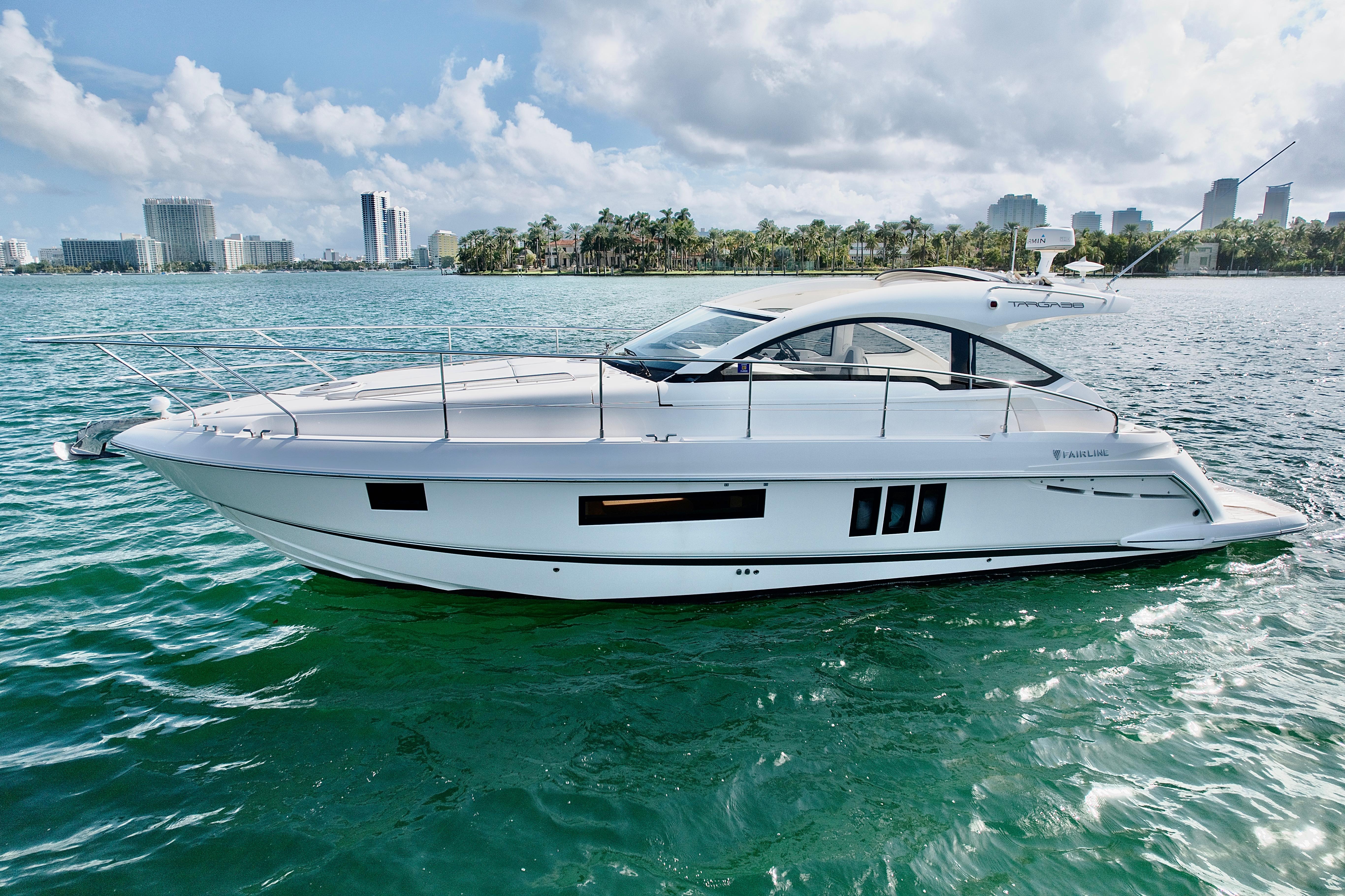 Step aboard this 2023 Pardo 43 MORGAN 1, an immaculate example of Italian craftsmanship and contemporary design. Combining performance, luxury, and style, this yacht delivers an unmatched day boating and weekend cruising experience- perfect for the waters of Miami and the Bahamas. The Pardo 43 is renowned for its walkaround design, and socially oriented deck layout. The large aft sunpad, open cockpit with dining area, and seamless flow to the swim platform creates an effortless connection from bow to stern.