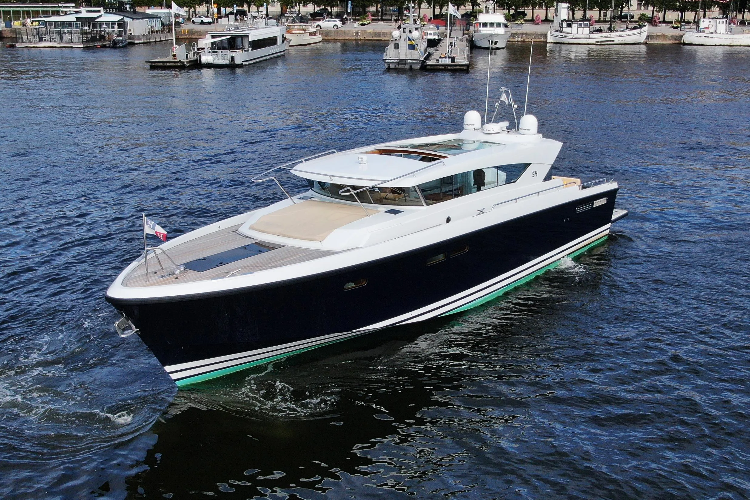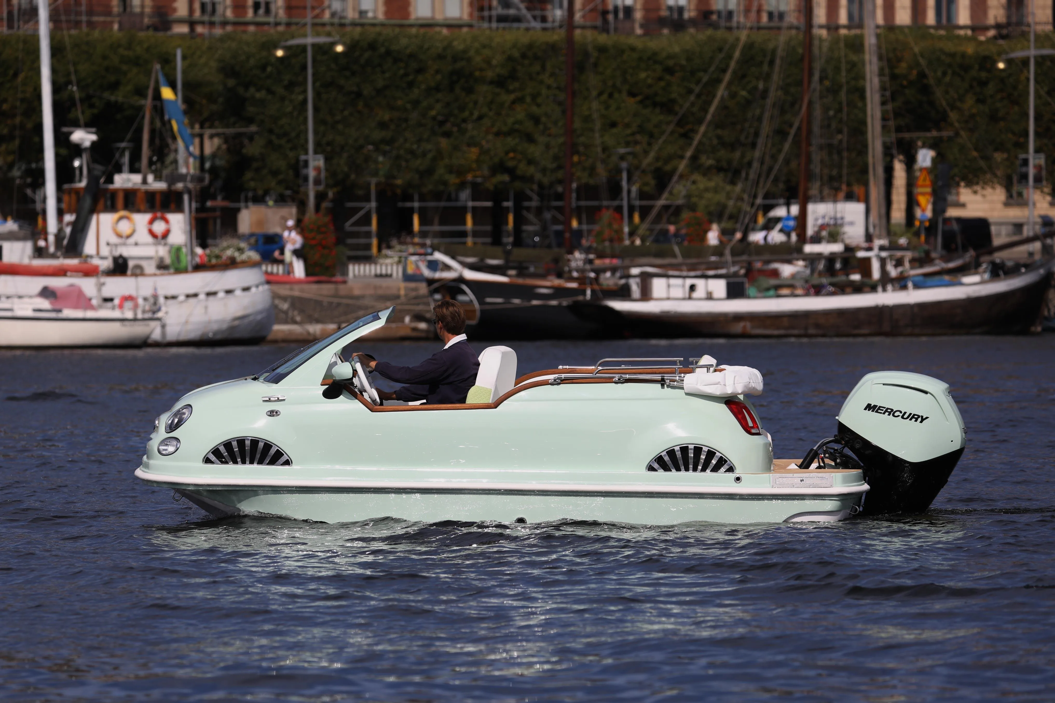 The boat is available for viewing and test drives at Galärbryggan, Stockholm.